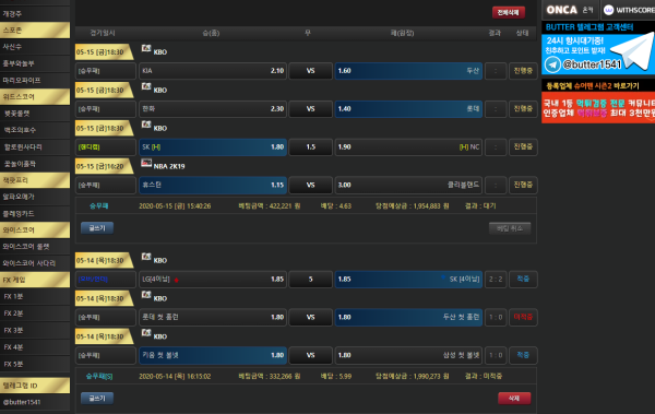 이제 버터 폰벳경기 생겨서 심심함을 주지않네요
