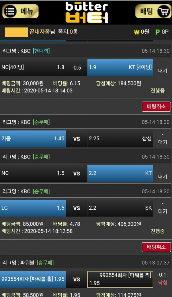 버터 크보 적중맞길 기원하면서후기요^^ 댓글1개