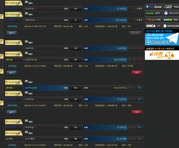 어제 배팅하신 KBO 경기 1폴은 지셨지만, 2폴 적중 진심으로 축하드립니다!