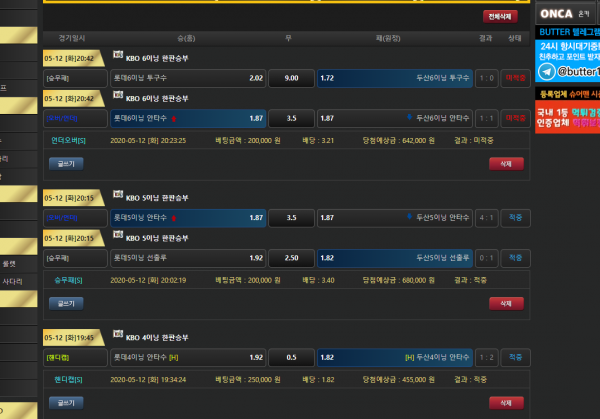 버터 kbo한판승부 성공