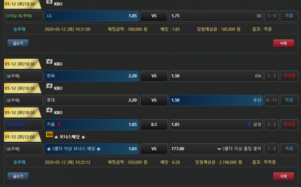 언더나와야할 경기들이 오바나오고 ..