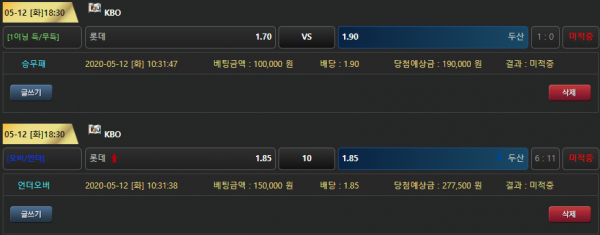 언더는 까비.. 오늘 롯데가 이길줄알았는데