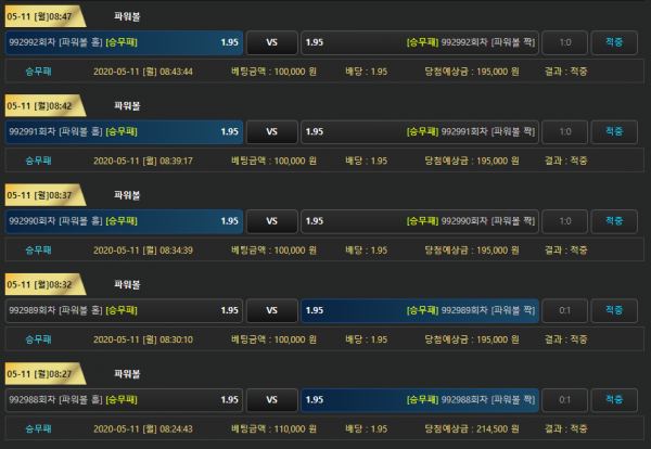 오늘 야구없어서 출첵할겸 들어와서 오랜만에 파워볼 배팅해봤는데 5연타 해버렸네요 ㅋㅋㅋ