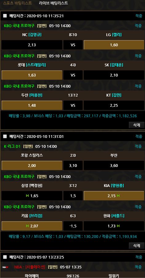 하하하하하 한 이틀쉬고 배팅했는데 대박났네
