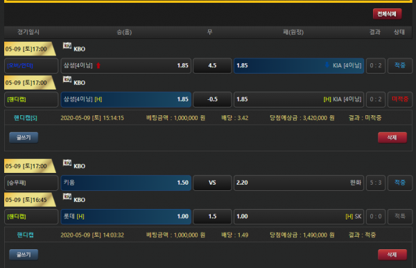 오늘 야구가 취소된 경기들 이많아서 적특처리 된 경기가 많네요ㅠ