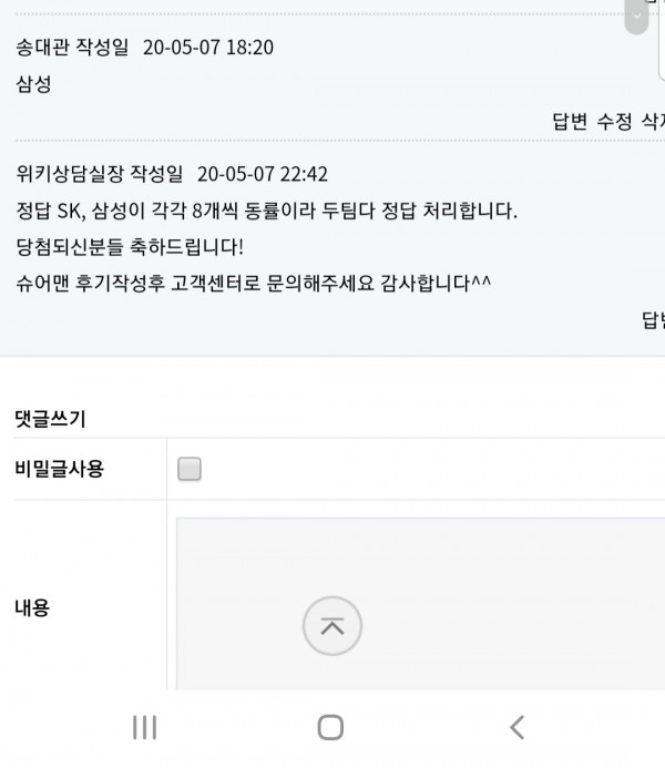 삼성팬이라 삼성 찍엇는데 당첨햇네요 ㅎㅎ