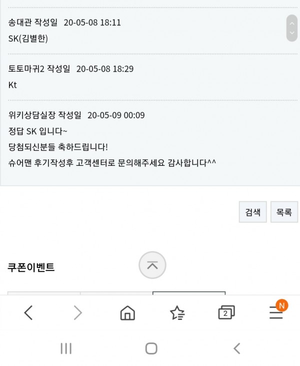 위키로얄 가족방 및 슈어맨 쿠폰이벤트 당첨을 축하드립니다.