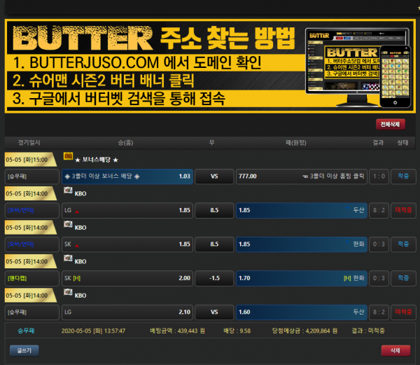 그리고 버터에서만 진행하는 KBO 한판승부 스폐셜 이벤트도 있으니 게시판 확인하시고,