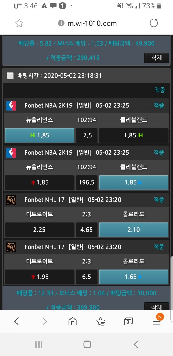 요즘 또 메이저리그도 발매해서 경기가 너무 많아요^^