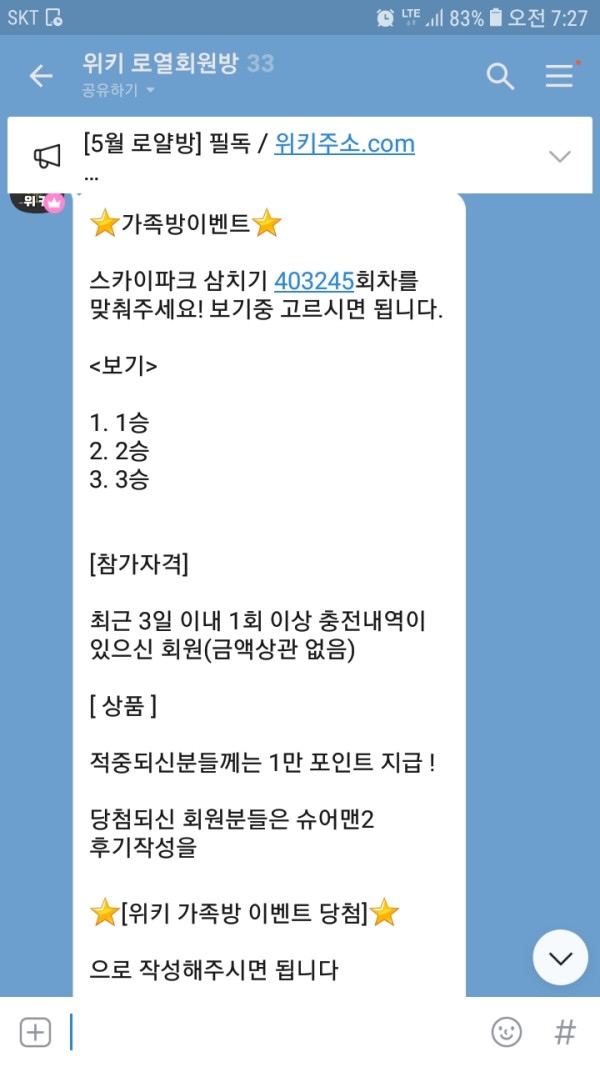 위키 가족방 이벤트 후기입니다