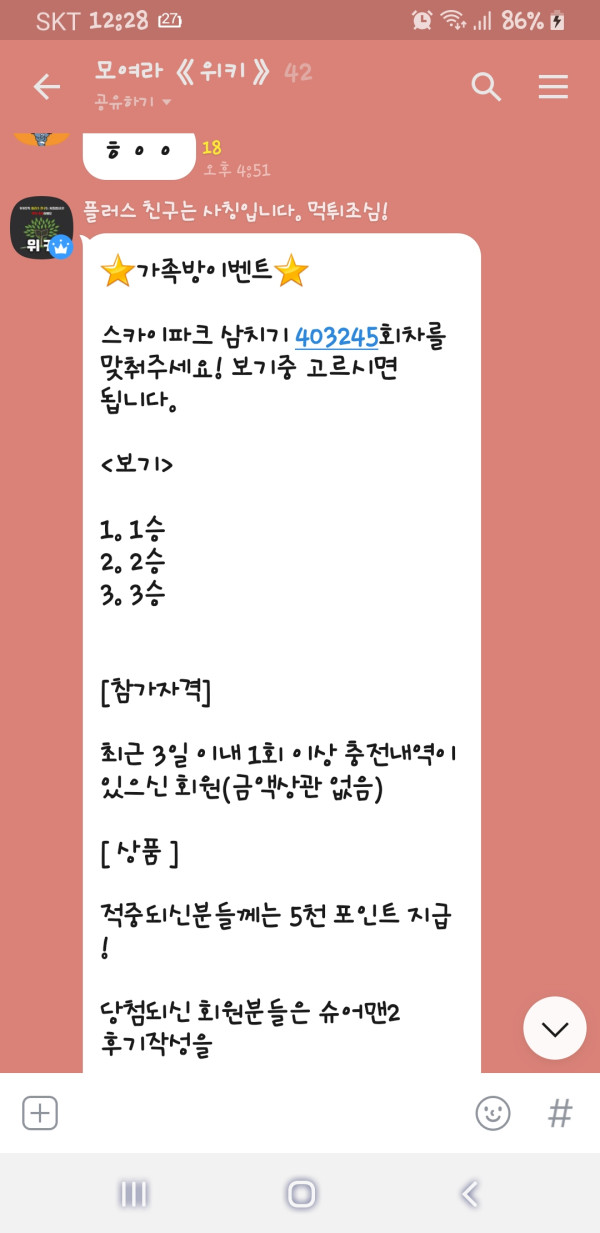 가족방 돌발이벤트 당첨을 축하드립니다~