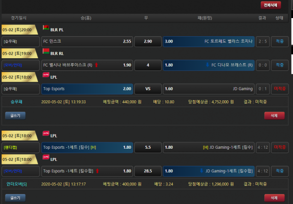 탑이스포츠 믿었더니 발등을 찍어버리네요 진짜 어처구니가 없지만 이따가 다시 경건한마음으로 재충해서 다시 다음경기 노려봐야겠네여 이따 경기는 꼭 먹었으면 좋겠네 휴 그래도 버터 언제나 운영진분들께서 이벤트도 많이해주시고 잘해주셔서 너무 고맙네여 언제나 잘되길 ㅎㅎ 모두 코로나 조심하세요 건승 가즈아~