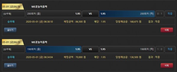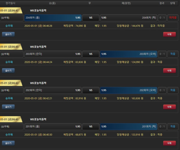 꽃놀이 홀짝도 재밌네요 줄도 잘나오는것같구욤