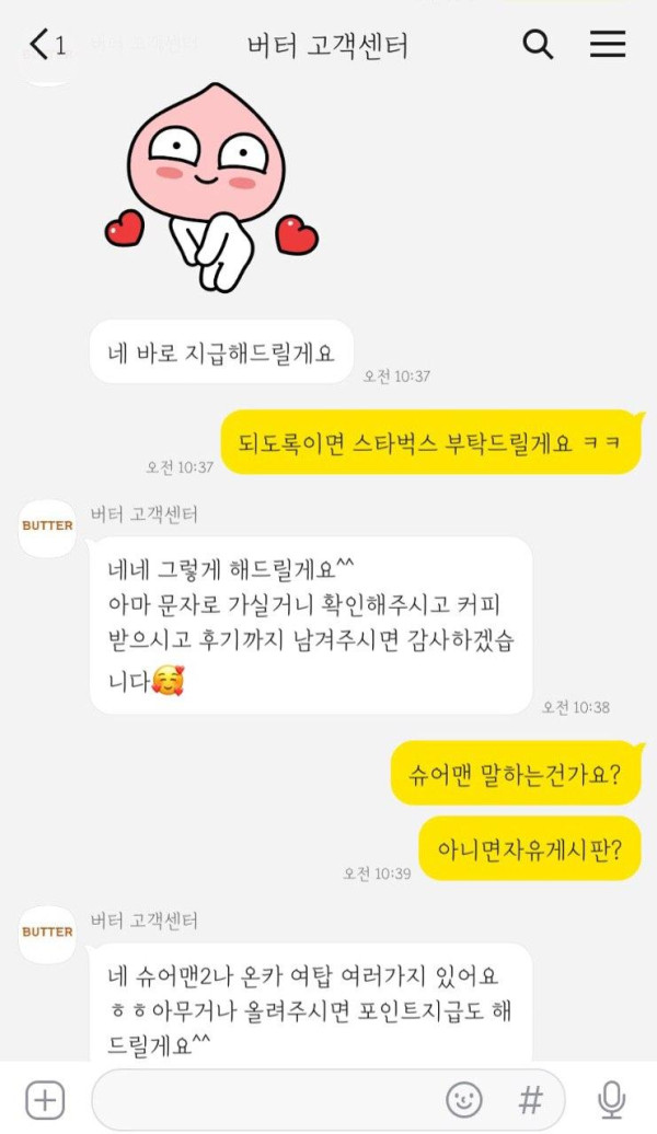 이번에 기프티콘 이벤트도 진행한다고 하니 다들 이벤트로 이득 많이 보시고 버터 사용해보셨으면 하네요