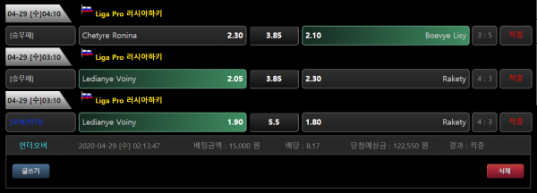 미스터 그린에서 하키 3폴 맞췄네요!! 배당도 좋아서 자고 일어났더니 아침부터 기분이 좋네요 여러분들도 건승하세요!