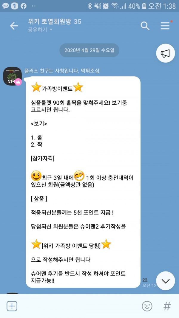 가족방내에서 진행중인 이벤트에 당첨되셨네요!