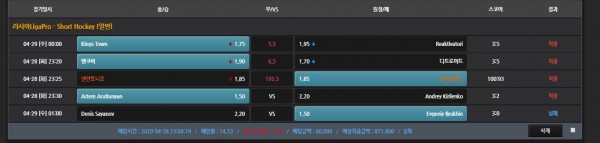 아.. 러시아하키, 가상농구, 가상하키, 탁구 다양하게 배팅을 했는데