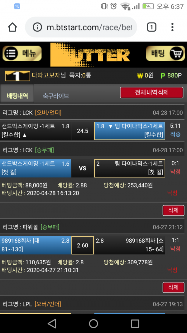 배팅하신 내역 아쉽습니다. 회원님 배팅이 잘 안되실때는 쉬었다 하시는걸 추천드릴게요.