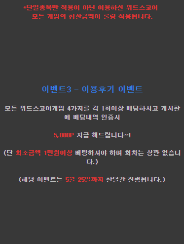 위드스코어 3가지 이벤트 진행하고 있으니 게시판 확인해주시면 감사하겠습니다.