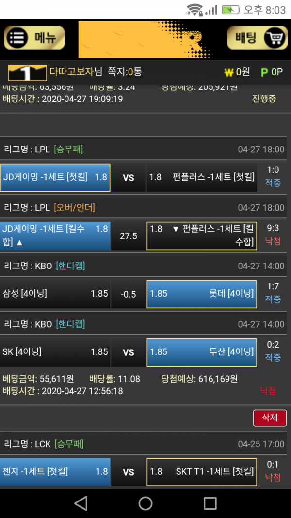 배팅하신 내역 아쉽습니다. 실시간 셋트별 발매되오니 많은 참여 부탁드릴게요 ㅎㅎ