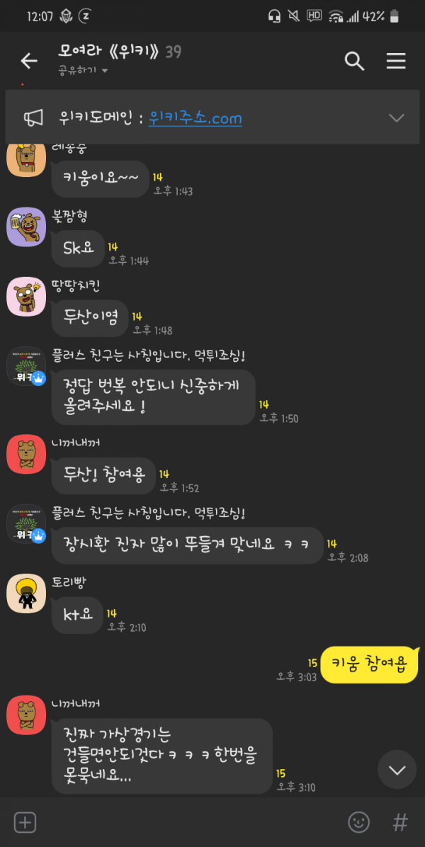 위키에서 매일 작은 이벤트를 진행중하오니 항상 채팅 체크해주세요~