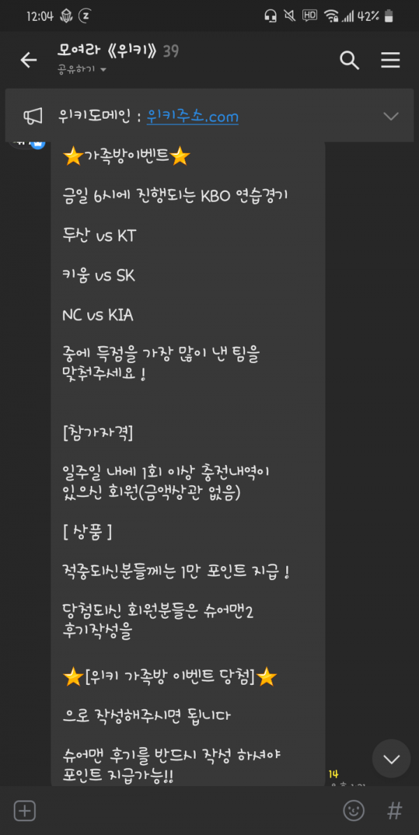 위키가족방이벤트당첨