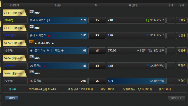 롯데 어제 이길줄 알았는데 아쉽습니다. 오늘 배팅하신 내역 꼭 적중 되시길 기원드릴게요.