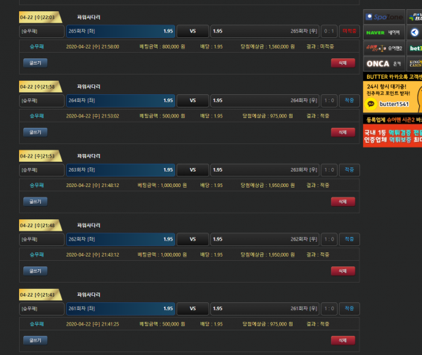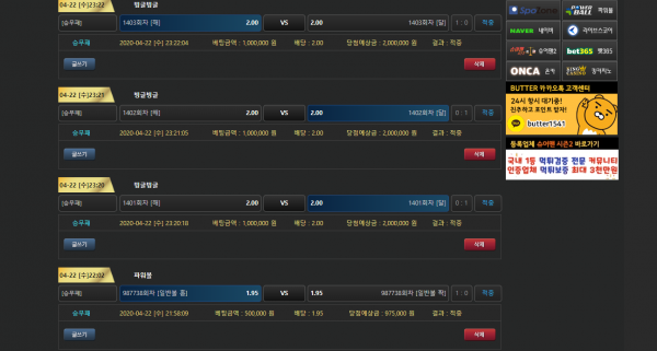 배팅내역이 너무 많아서 적중된것만 올릴게요