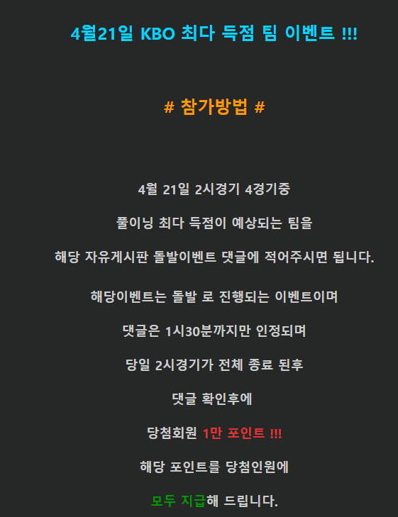 금일 돌발이벤트 하네요 KBO 안올라오면 어떡하지 걱정했는데