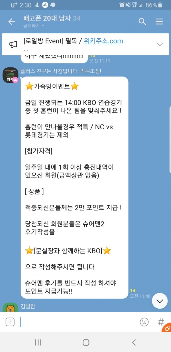 오늘 위키 로얄방 그리고 가족방에서 이벤트를 햿네요 ㅎㅎ