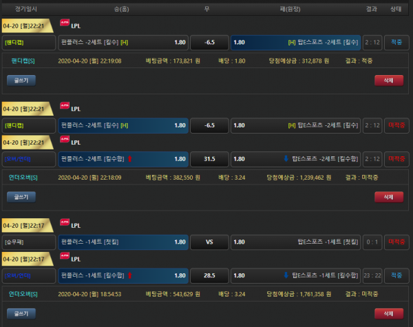 항상 배팅은 신중하게 하셔야합니다 ㅠㅠㅠ 주배팅이 적중 되셨어야 했는데 아쉽습니다.