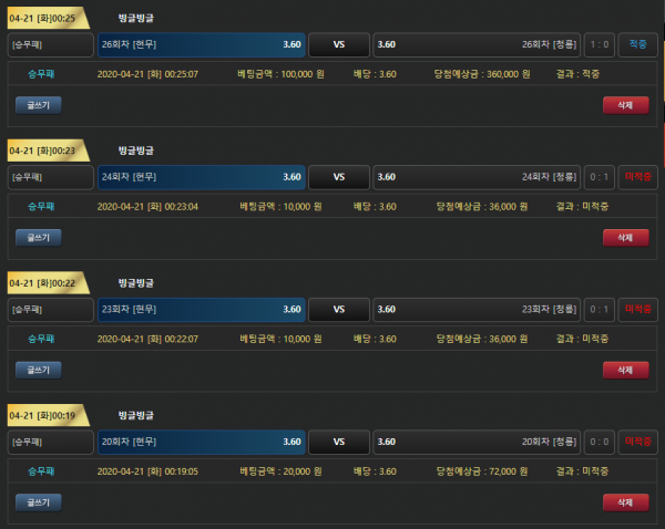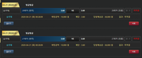 바로 달성이네 ㅋㅋ 근데 맞으면 3.6배당이라 개꿀이네 그냥 배팅 본전 치고 이벤트 포인트 받는다 생각하면 될듯요