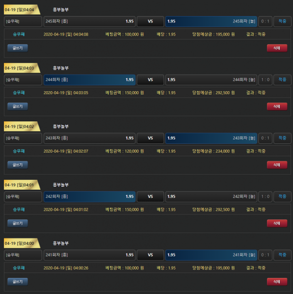 최고연승이 파워사다리 8연승이였는데 역대급 하나 찍고가네요 100충전해서 260환전 해나갑니다 나이스