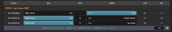 아침경기 3경기 베팅했는데 축구 하나, 탁구 두개...