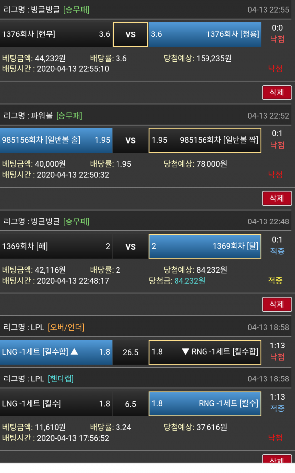 배팅하신 내역 아쉽습니다.ㅠㅠㅠ 이벤트 많이 진행중이오니 많은 혜택 챙겨가세요.