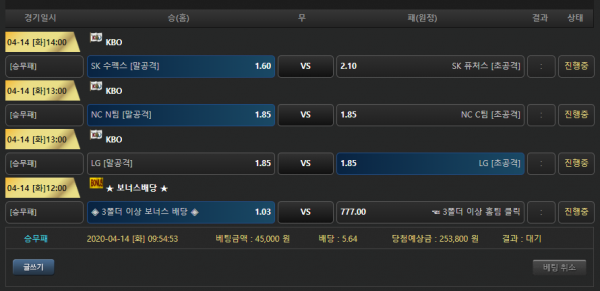 어떤 경기든 관전하면 재미있더라구요. 배팅하신 내역 꼭 적중 되셨으면 좋겠습니다.