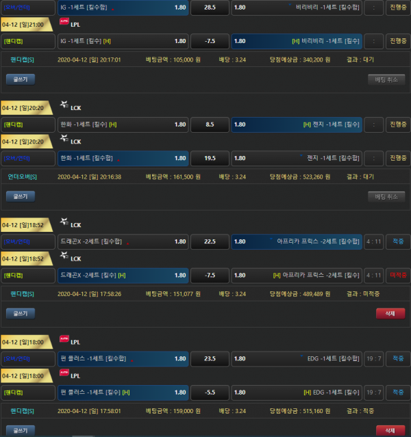 배팅하신 한국롤, 중국롤 경기 낙첨은 안타깝지만