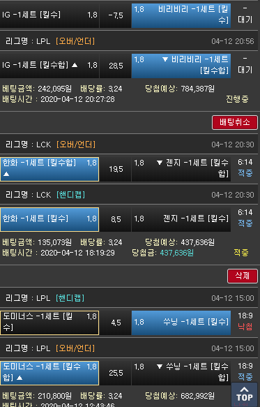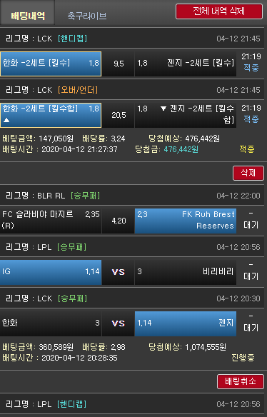 배팅하신 경기들 그래도 본전은 찾으셔서 다행입니다T-T..