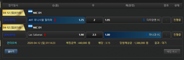 니카라과는 홈승,무만 가면 집산다고 다들 그러던데 무잡기는 쫄리고 그냥 개 언더 개오버 팀 배팅 해봅니다. ㅋㅋㅋ