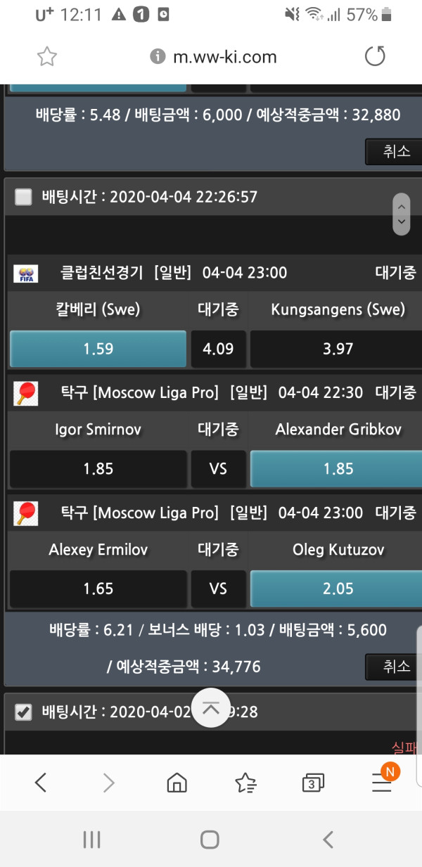 지금도 세경기 탁구 두경기 축구 한경기 이렇게배팅 했는데