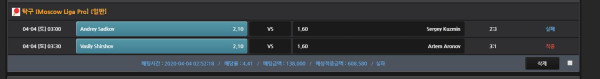 크 탁구 2폴 역배 노려봤는데 한개는 적중이고 하나는