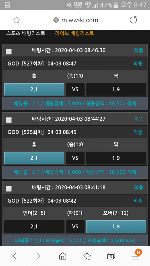 즐거운 베팅되세요 !