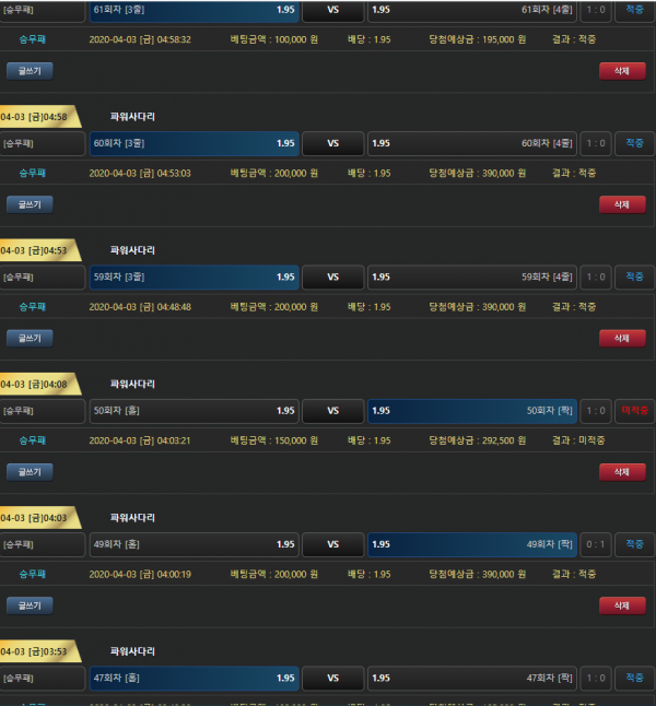 연승이벤트는 아쉽군요. 적중률 대박이십니다.