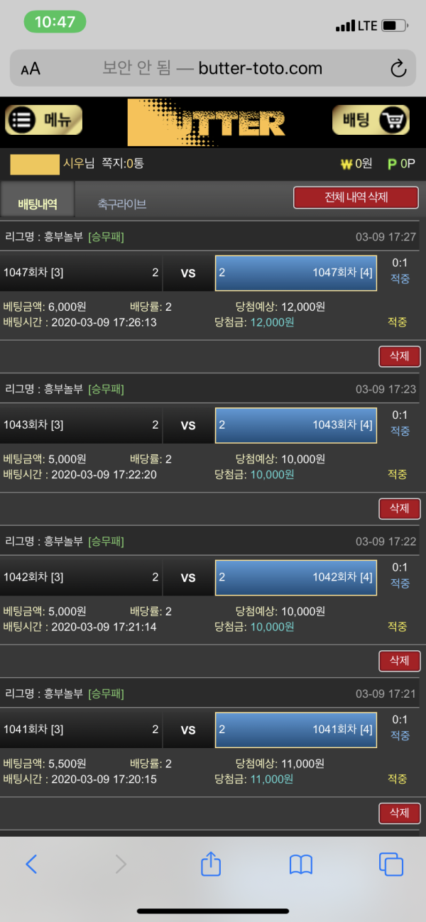 스포존 적중 축하드리고, 항상 "버터"에서 연승하길 기원하겠습니다~ 다음에도 연승하셔서 꼭 부자되세요~~ 오늘도 저희 "버터" 이용해주셔서 감사하고, 현재 이벤트 많이 진행중이니 공지사항 체크 후에 이용하셔서, 이벤트 혜택으로 건승하시길 바랍니다~ 앞으로도 더 많은 정보와 좋은 이벤트 등, 지속적인 관리로 사랑받는 버터가 되도록 노력하겠습니다!