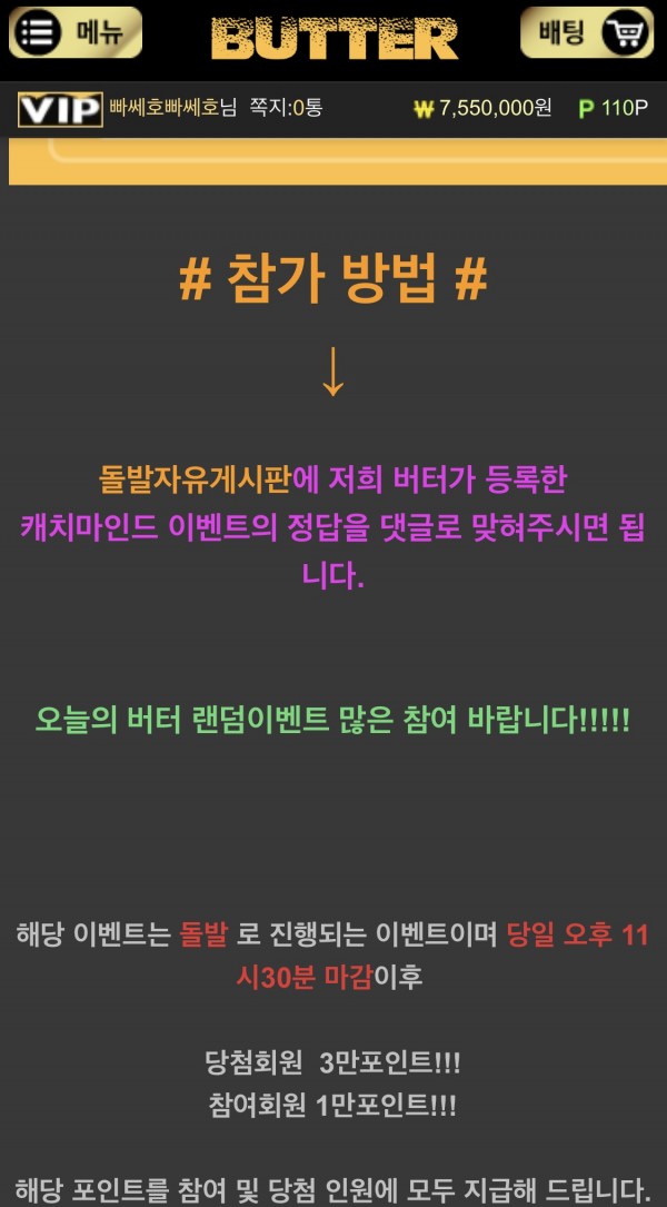 버터 캐치마인드 돌발이벤트 후기!