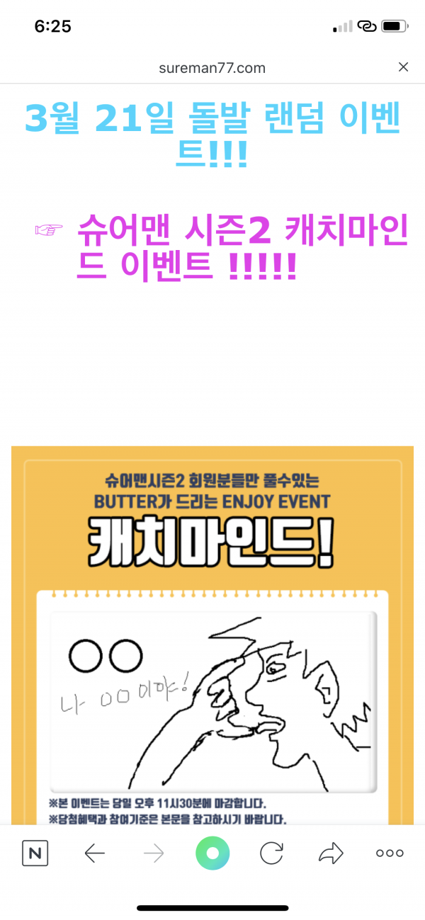 이빨 발린소리가 아니라 버터 이벤트도 괜찮하고 무엇보다 충환전이 빠르고 제가 주로 사용하는 사이트입니다! 여러분들도 이용한번 해보세요~