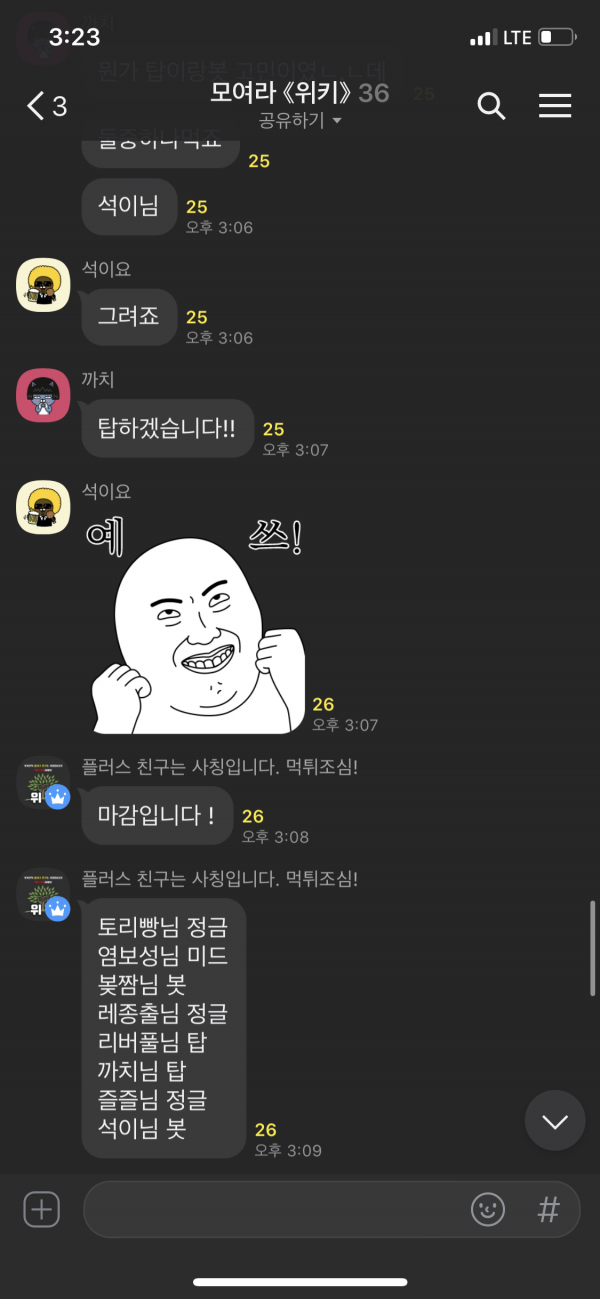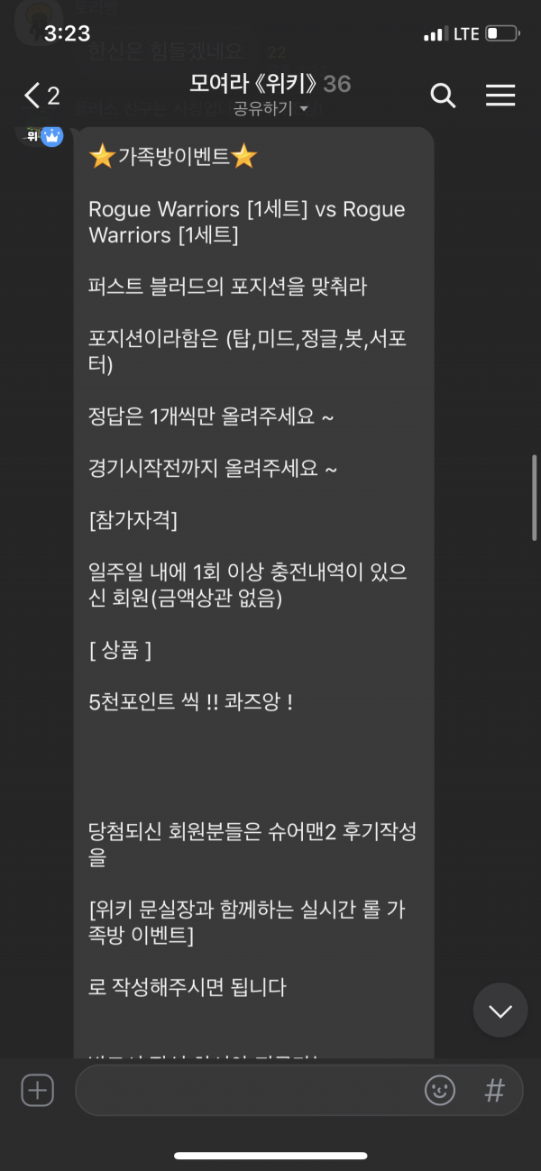 위키 가족방 롤 포지션 맞춰라 이벤!!!