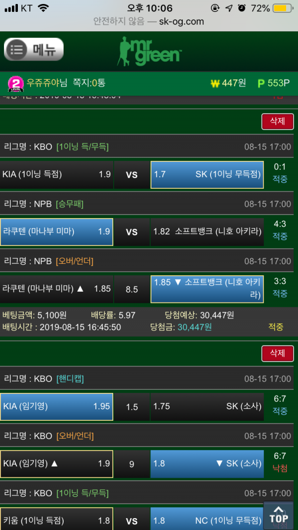 푼돈 이긴하지만 맞추니까 짜릿하네욤!!! 미스터그린 환전1초컷 나이따
