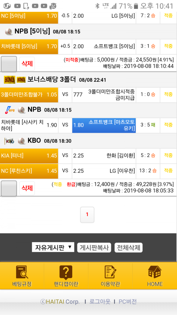 잘 살려서 내일 믈브 도전갑니다 다들 건승하시고 해태 이용 마니 해주세요