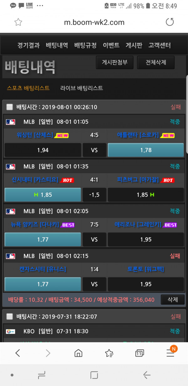 환전걱정없이 배팅만 집중하니깐 그나마 승률은 많이 올랐네요
